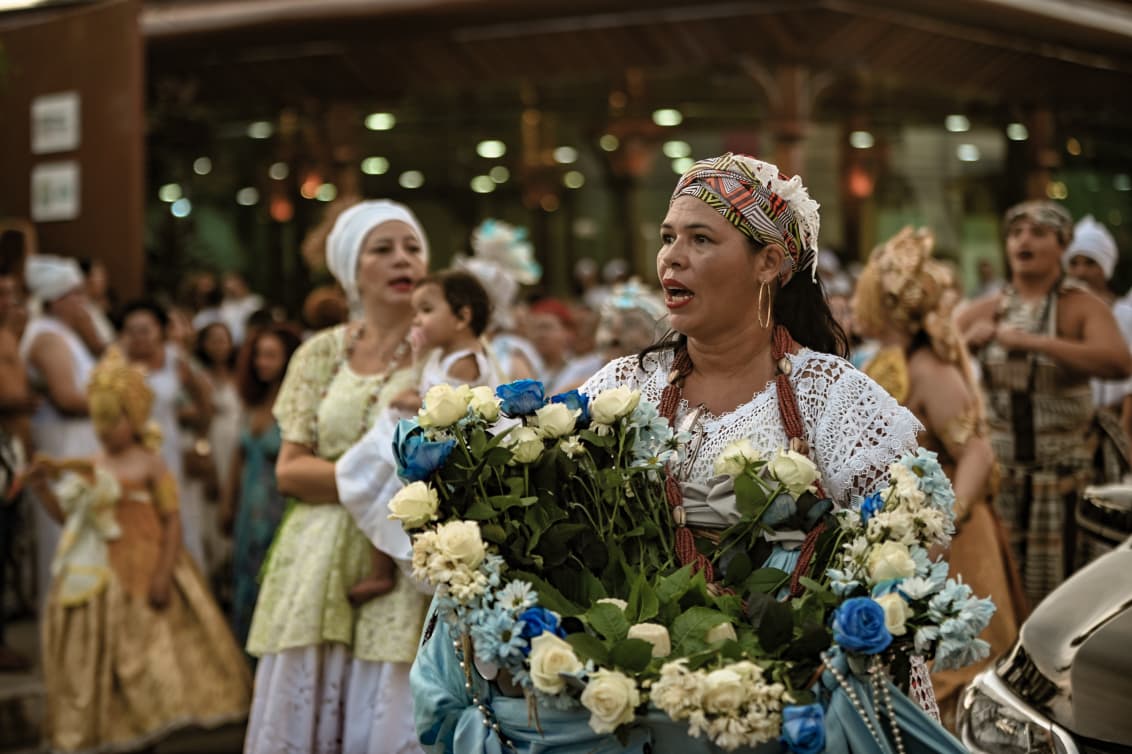 As águas invisíveis do mar correm pela Amazônia. Aqui, a Rainha do Mar encontra morada, navega por rios e igarapés e recorda que a floresta também reza. Nas ruas e varadouros, o cortejo de Iemanjá avança em passos firmes, leva flores, tambores e promessas e reafirma uma fé que segue resistente nos territórios, corpos e memórias. 📷Juan Vicent | Amazônias que nos Habitam | Proa