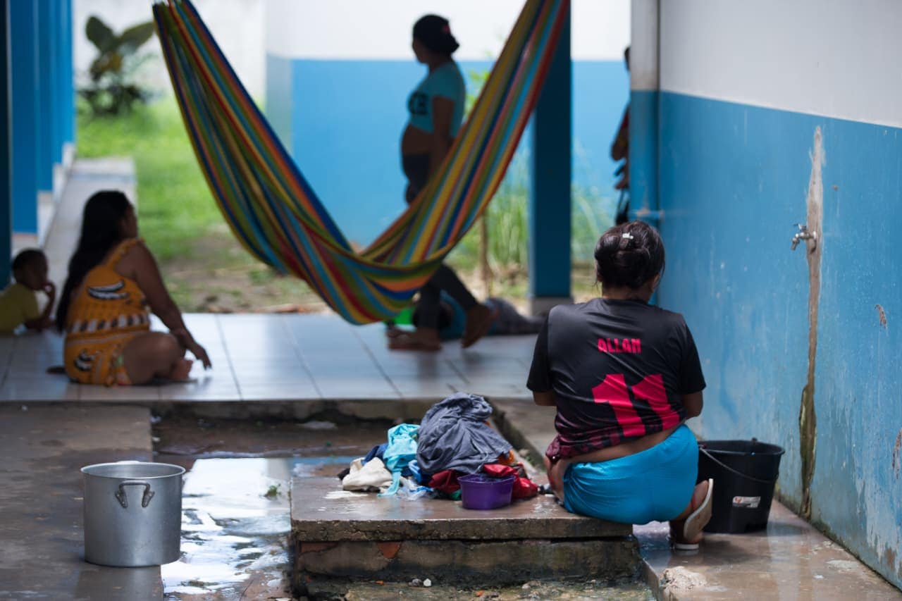 Seis famílias indígenas estão acolhidas em abrigo no bairro Vila Acre, com assistência do governo do Estado. Seis famílias indígenas,