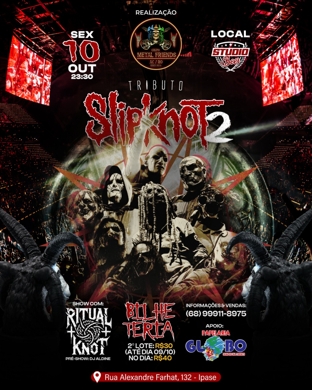 Tributo Slipknot 2 promete show intenso e visceral para fãs de metal em Rio Branco