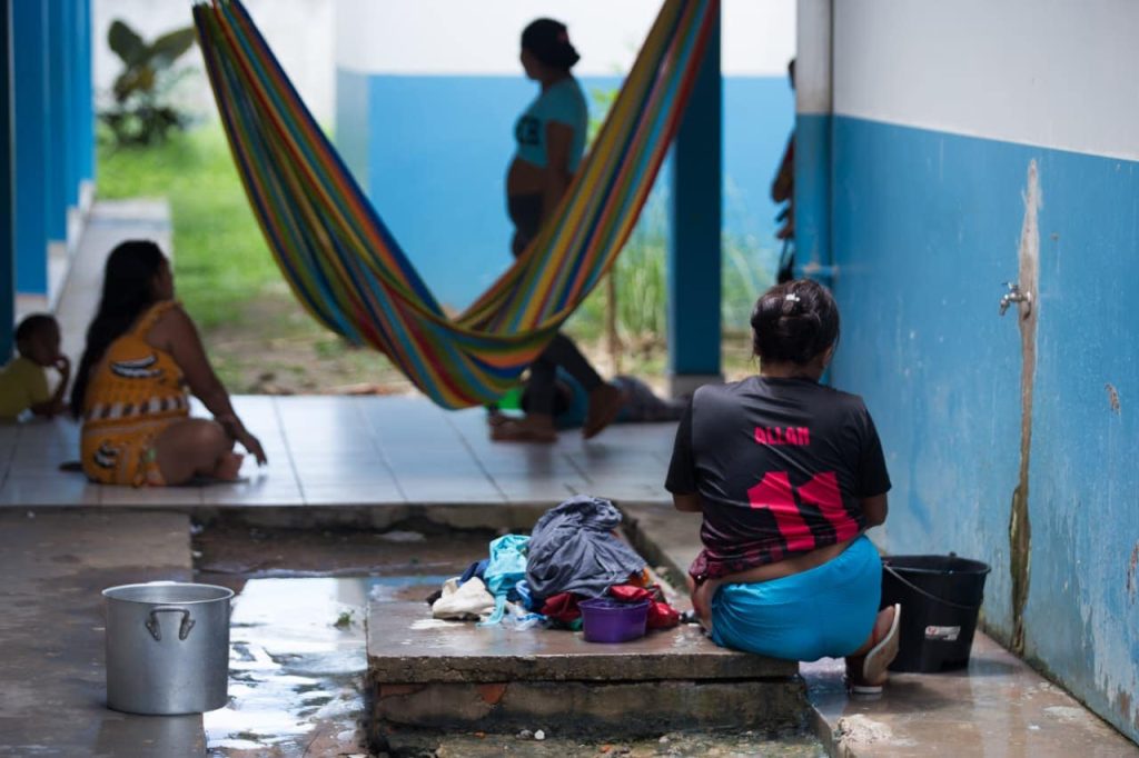 Seis famílias indígenas estão acolhidas em abrigo no bairro Vila Acre, com assistência do governo do Estado.