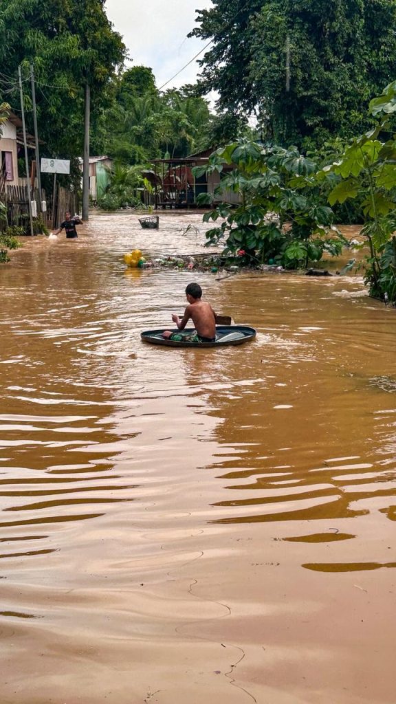 Já em Tarauacá, o rio que dá nome ao município alcançou 10,09 metros, superando a cota de transbordamento, que é de 9,50 metros. Em Plácido de Castro, o transbordamento dos igarapés Visionário e Santa Elena isolou regiões como Ramal 58, Monte Alegre e Cabo Severino. O Rio Abunã, principal curso d’água do município, está com 12,27 metros, próximo do limite de transbordamento, fixado em 12,50 metros.