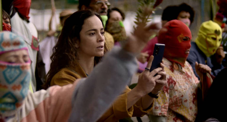 A personagem de Alice Braga é uma jornalista que atravessa esse território em conflito com o objetivo de contar ao mundo o que está em jogo. Para a atriz, a participação no projeto foi movida por um compromisso político e simbólico.