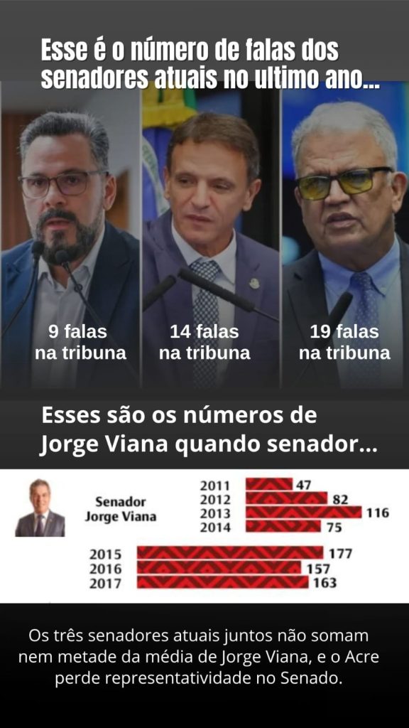 Os números mostram uma mudança significativa no nível de atuação. A média anual que o Acre já teve no passado superava 100 pronunciamentos. Hoje, nenhum dos três senadores alcançou sequer um quinto desse volume.
