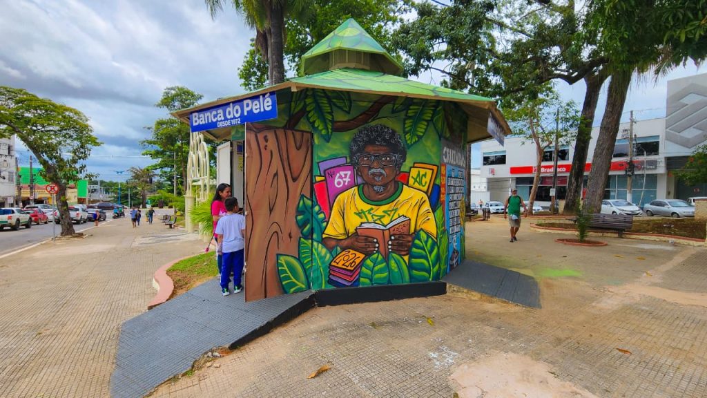 Quem atravessa a Praça Povos da Floresta, no Centro de Rio Branco, nos últimos dias percebe que algo mudou na paisagem. A tradicional Banca do Pelé, ponto histórico da capital acreana, agora tem paredes cobertas de tinta fresca, grafismos e personagens que contam histórias. Não apenas sobre a cidade, mas sobre quem cresceu nela.