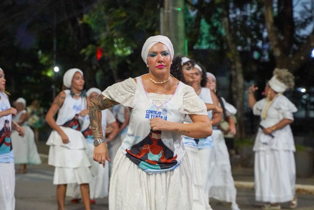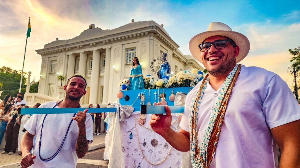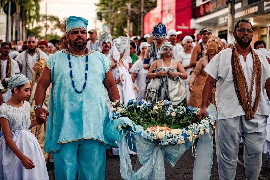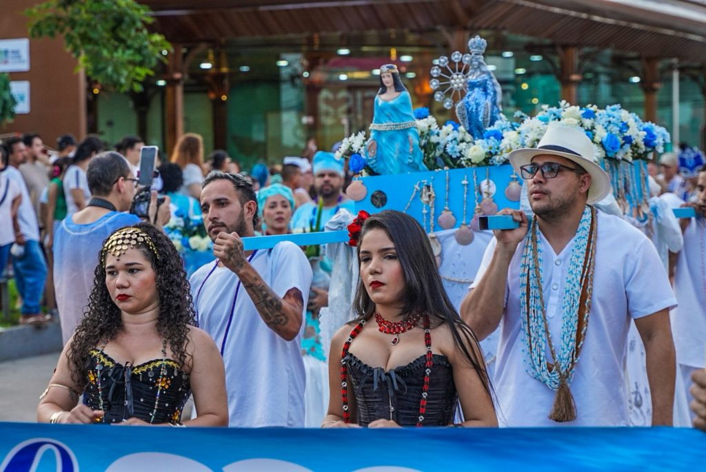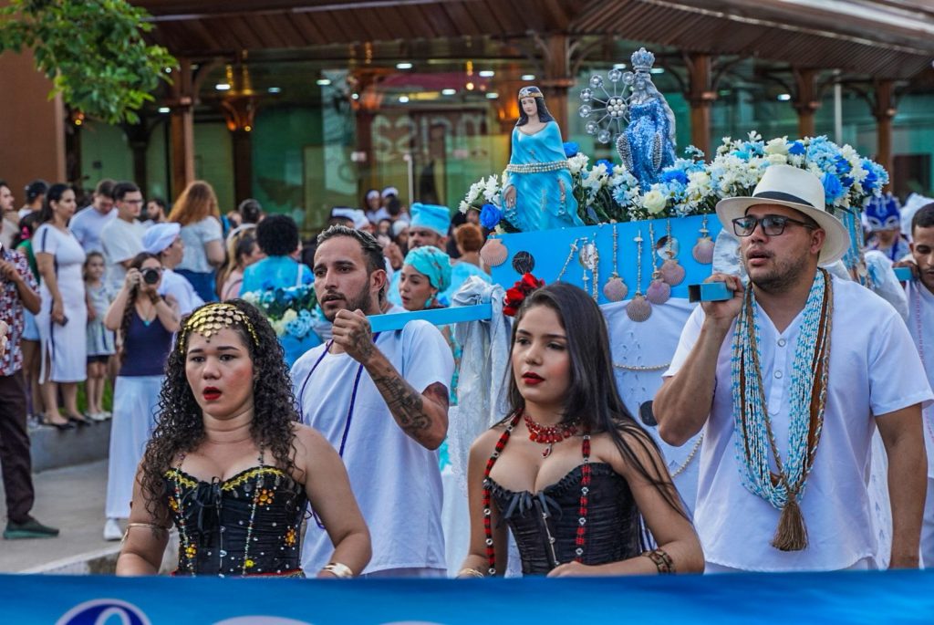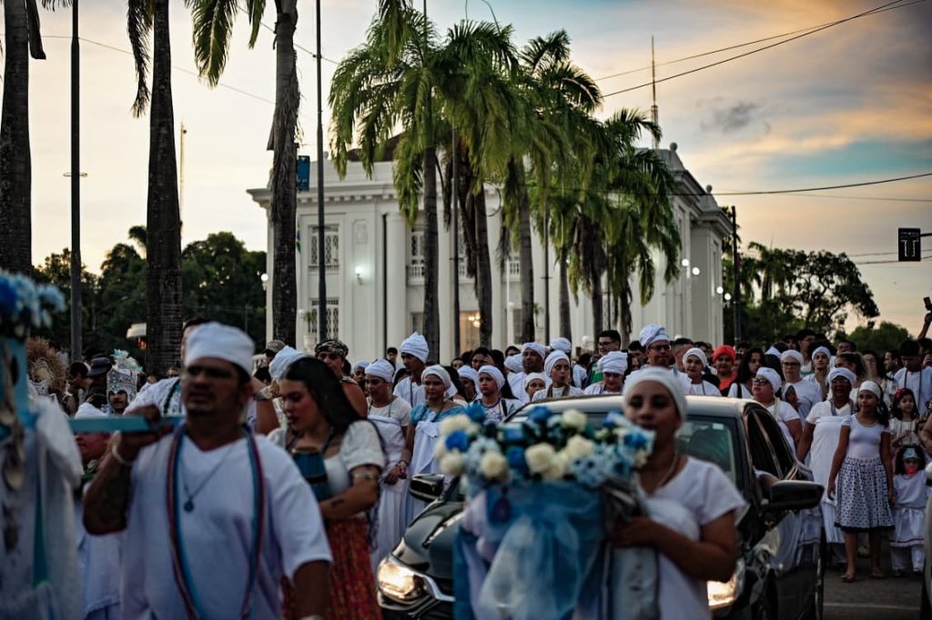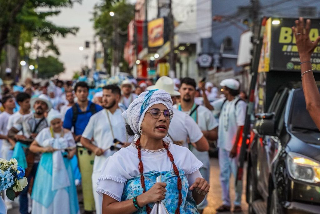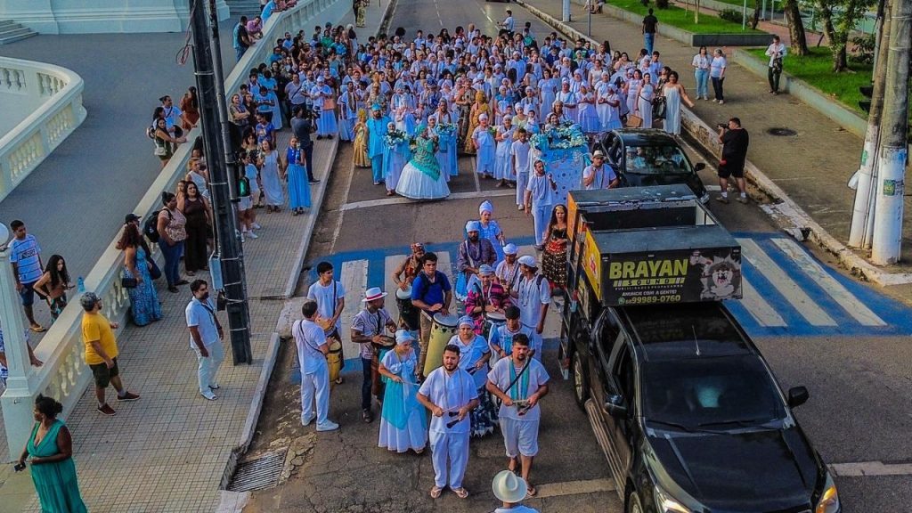 A concentração começou às 16h, em frente ao Memorial dos Autonomistas, com saída do cortejo entre 17h e 17h30. O percurso seguiu até as proximidades da Ponte Metálica, ao lado da Orla da Base, onde ocorreu a entrega de oferendas à divindade, com apoio do Corpo de Bombeiros.