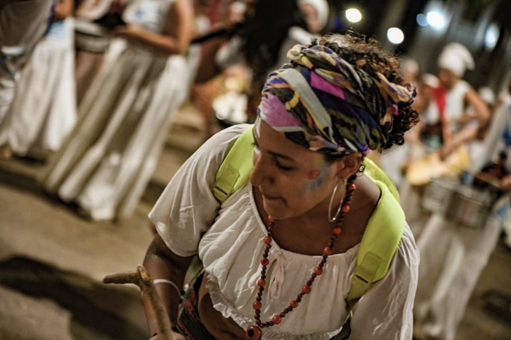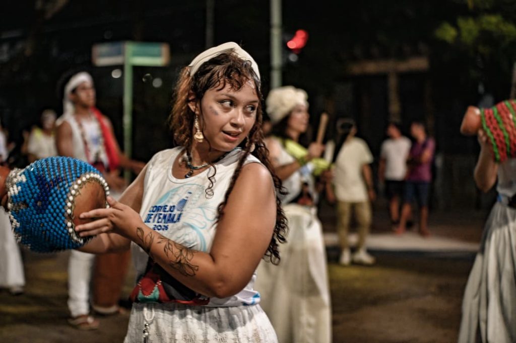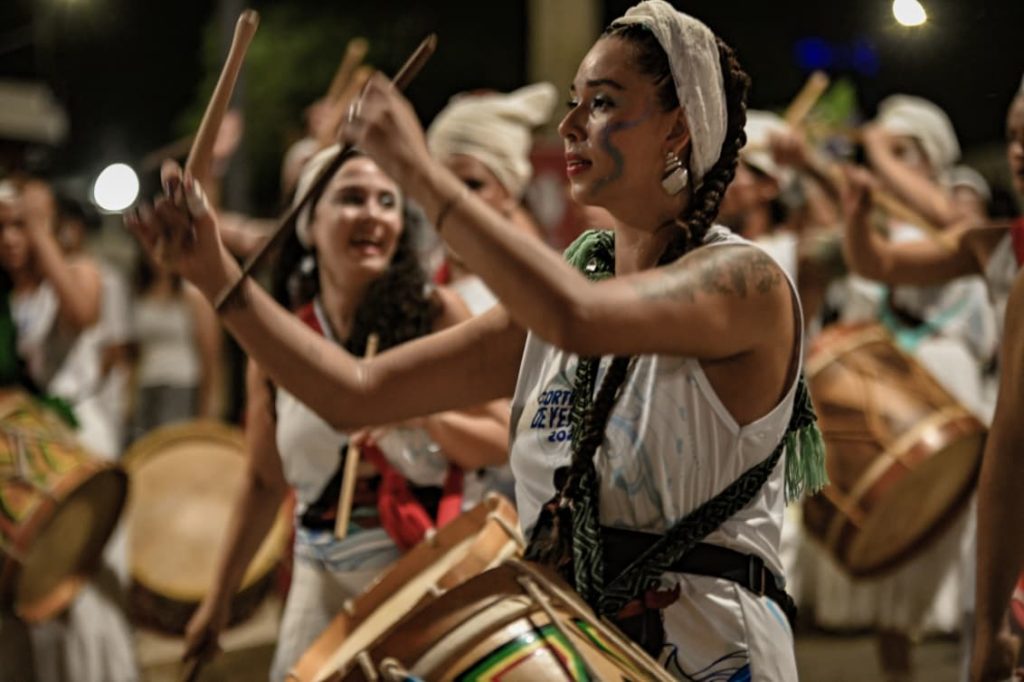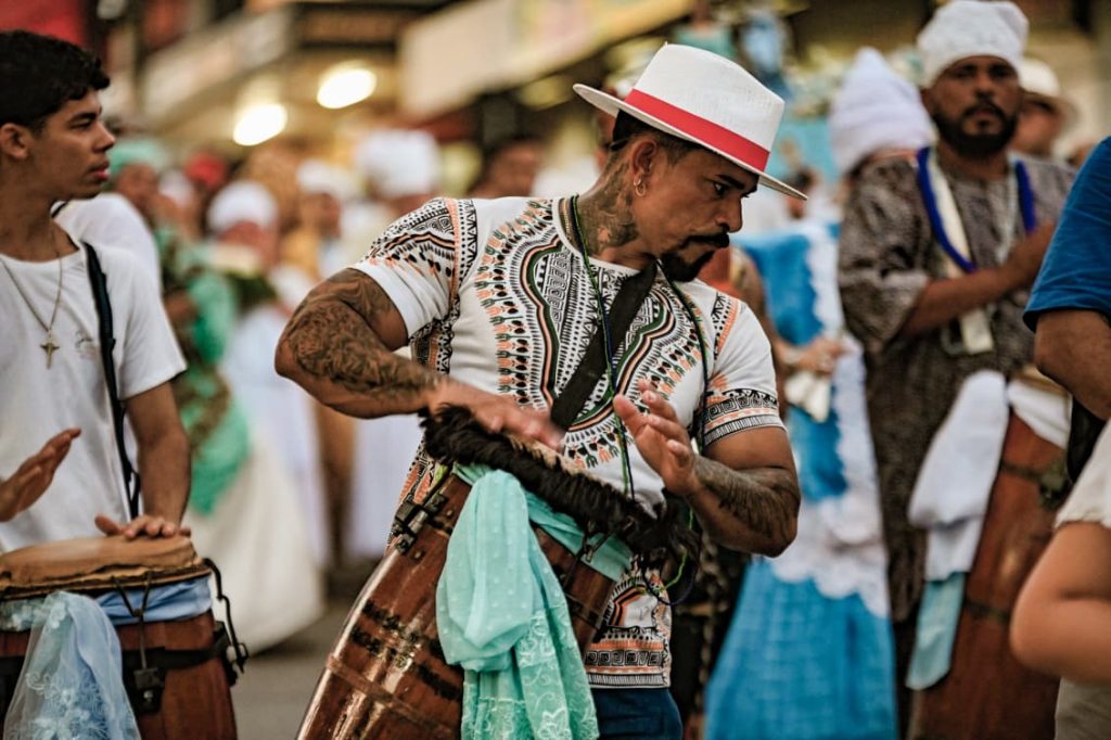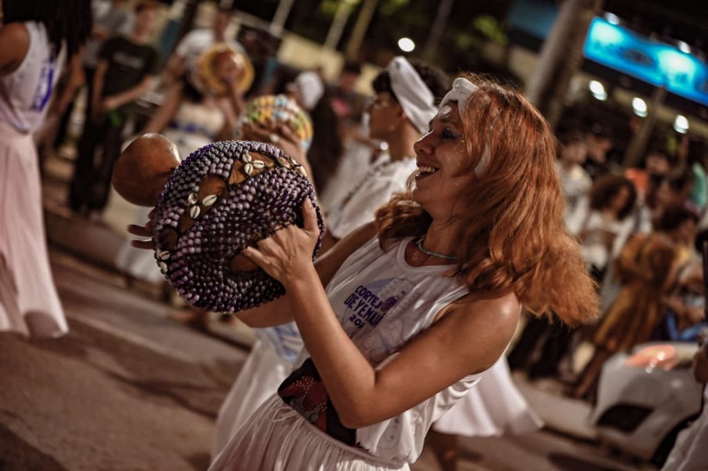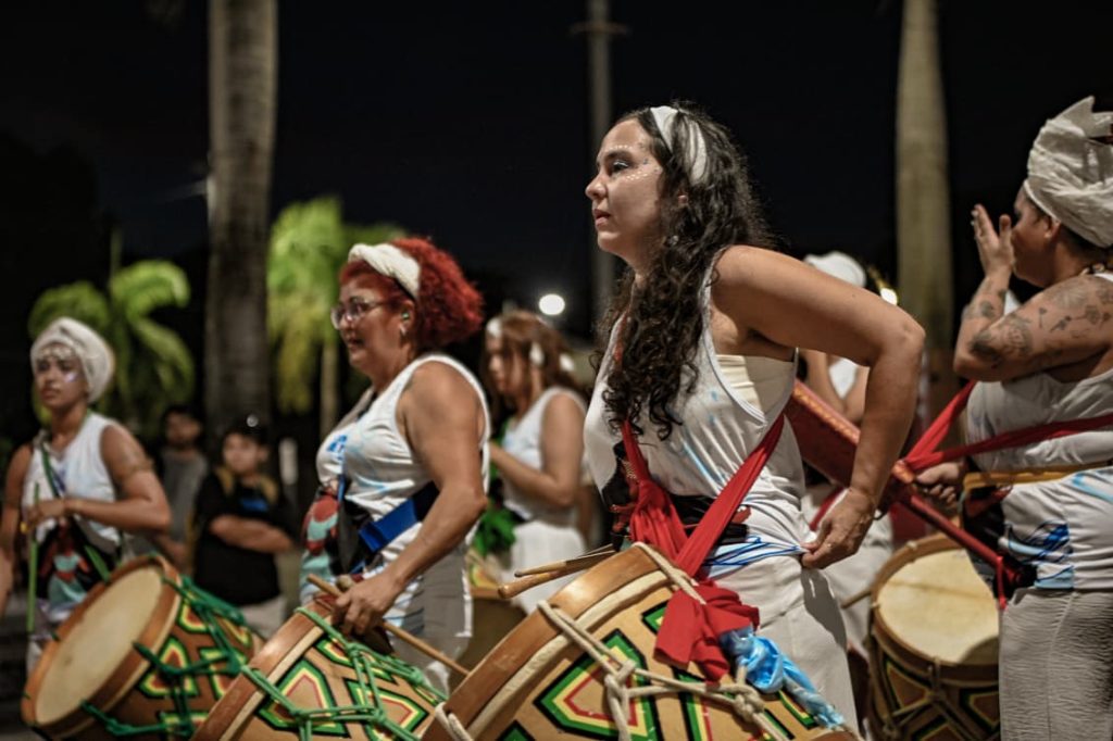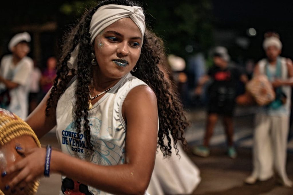 A programação incluiu apresentações de maracatu, samba e batuques tradicionais. O grupo Maracatu Pé Rachado e os Batuqueiros do Coco abriram o cortejo deste ano, conduzindo o ritmo da caminhada e atraindo a atenção de quem acompanhava pelas calçadas.