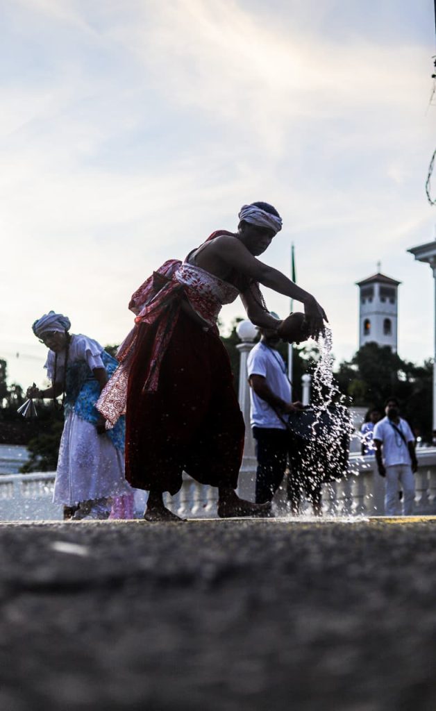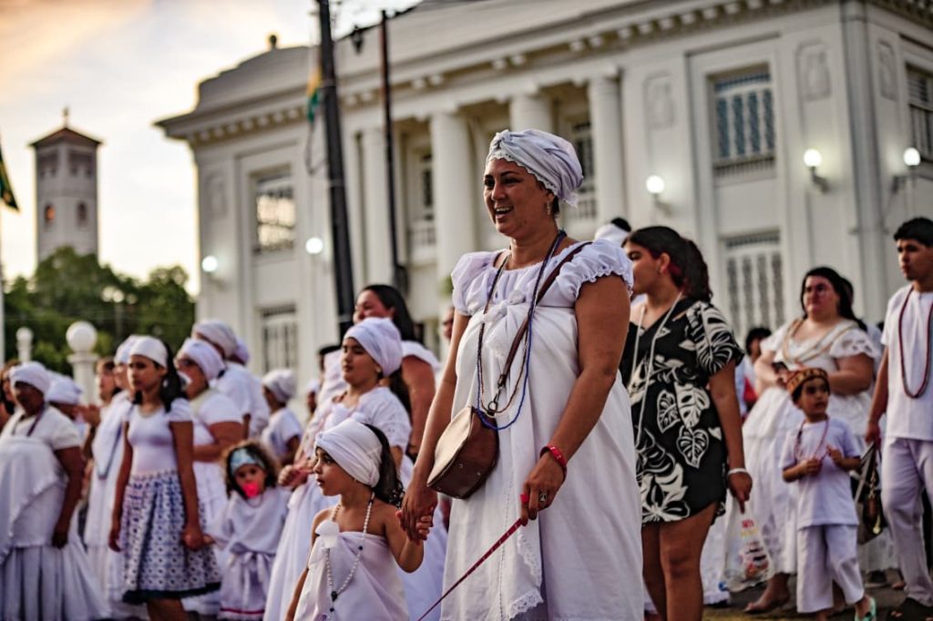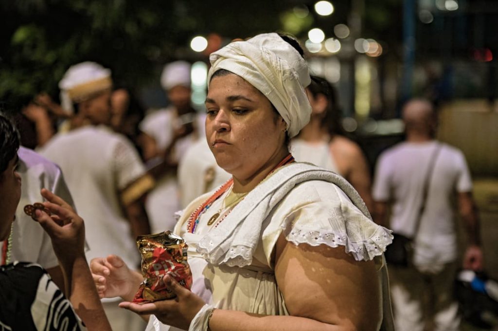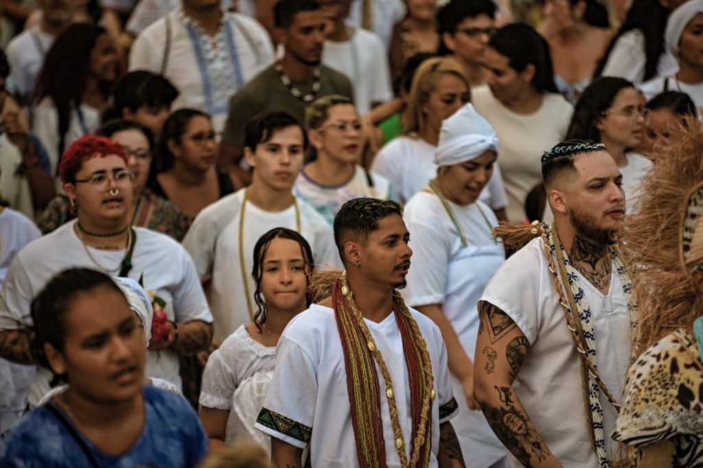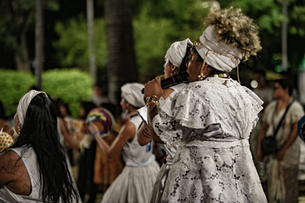 Durante o ato, lideranças ressaltaram o caráter político da celebração. “É um ato político, né, para a gente colocar um pouco nosso espaço para as pessoas, mostrar que as pessoas têm uma mania de falar que o Candomblé é um bando do demônio e não é uma religião. Nós nem acreditamos nisso, né? Nós somos uma religião de matriz africana. Por ser uma religião que veio de pessoas pretas, ela sempre foi demonizada no Brasil, desde sempre perseguida. Então a importância de hoje vem justamente para isso, para botar o nosso espaço”, afirmou Lídia Marciel.