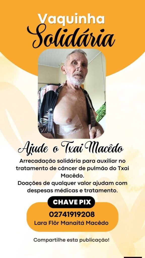 Com uma trajetória marcada pela defesa das comunidades tradicionais, dos povos da floresta e da Amazônia, Txai Macedo agora depende da mesma solidariedade coletiva que sempre ajudou a construir. A campanha busca garantir condições mínimas para que ele possa seguir o tratamento com dignidade.